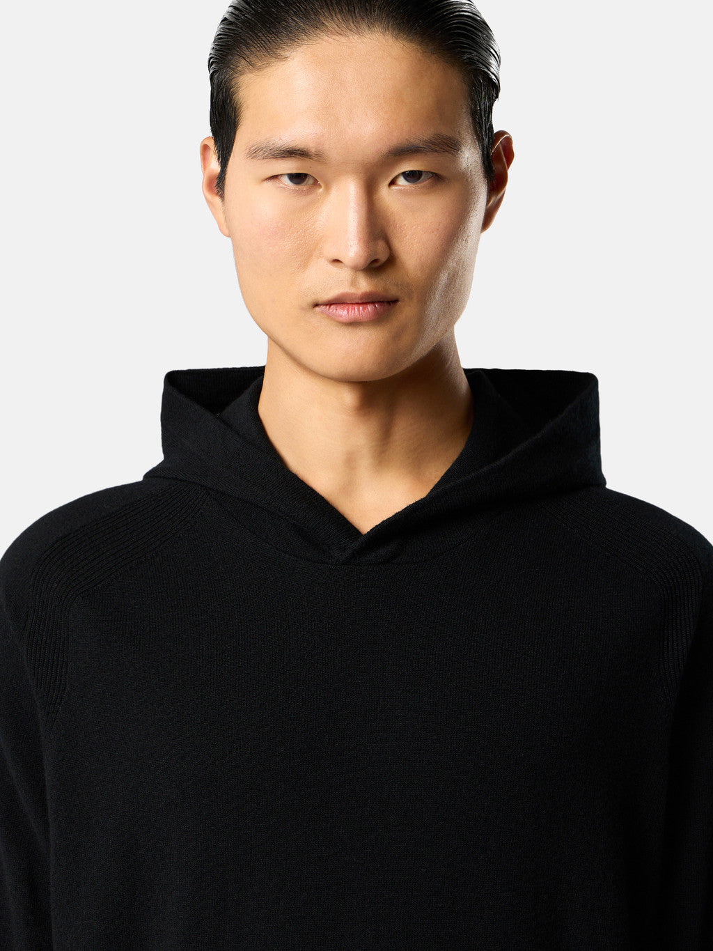 Knit hooded jumper in light RWS Geelong wool. Stocking stitch. Gauge 12.
