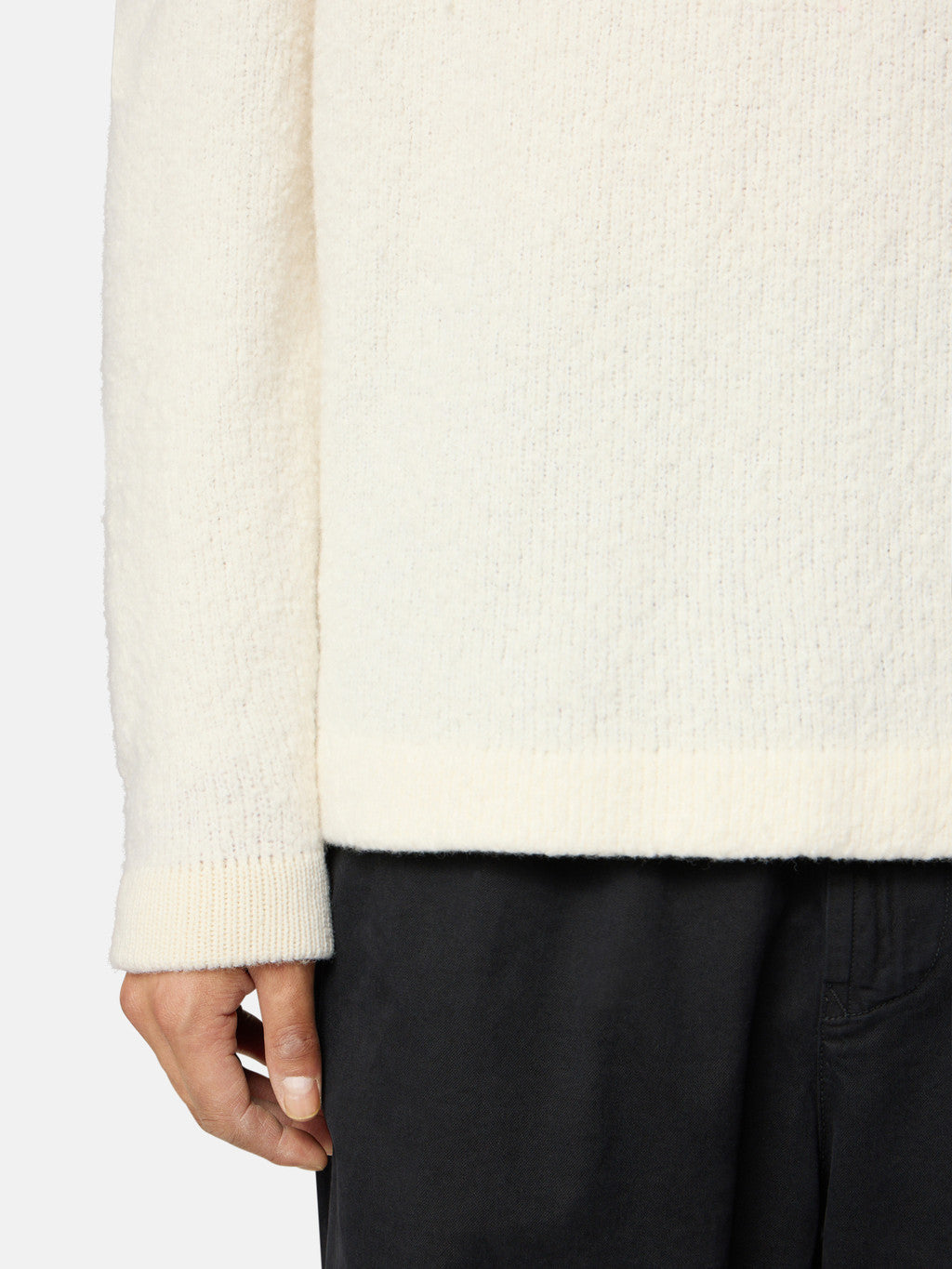 Knit crewneck jumper in wool-nylon blend with a brushed texture. Stocking stitch. Gauge 5.
