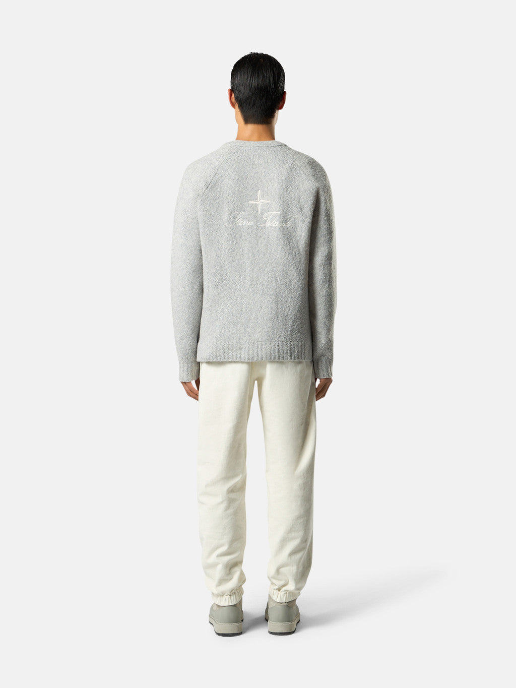Knit V-neck cardigan in wool nylon BOUCLE. Stocking stitch. Gauge 5.