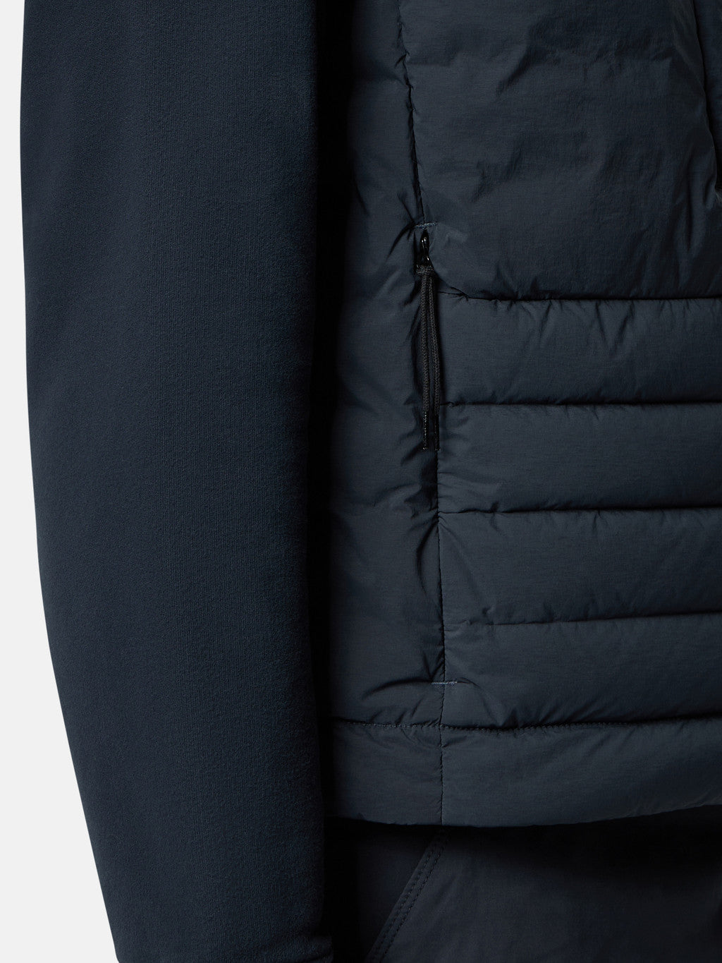 Down vest in a light stretch nylon single layer fabric undergoing a special weaving technique automatically creating the feather compartments directly from the loom. The seamless feather tunnels substantially increase the hold of the down. The finished garment is padded with direct injection with the finest feathers, specifically treated to resist garment dyeing. Garment dyed with the addition of a special anti-drop agent. RDS - Responsible Down Standard certified.