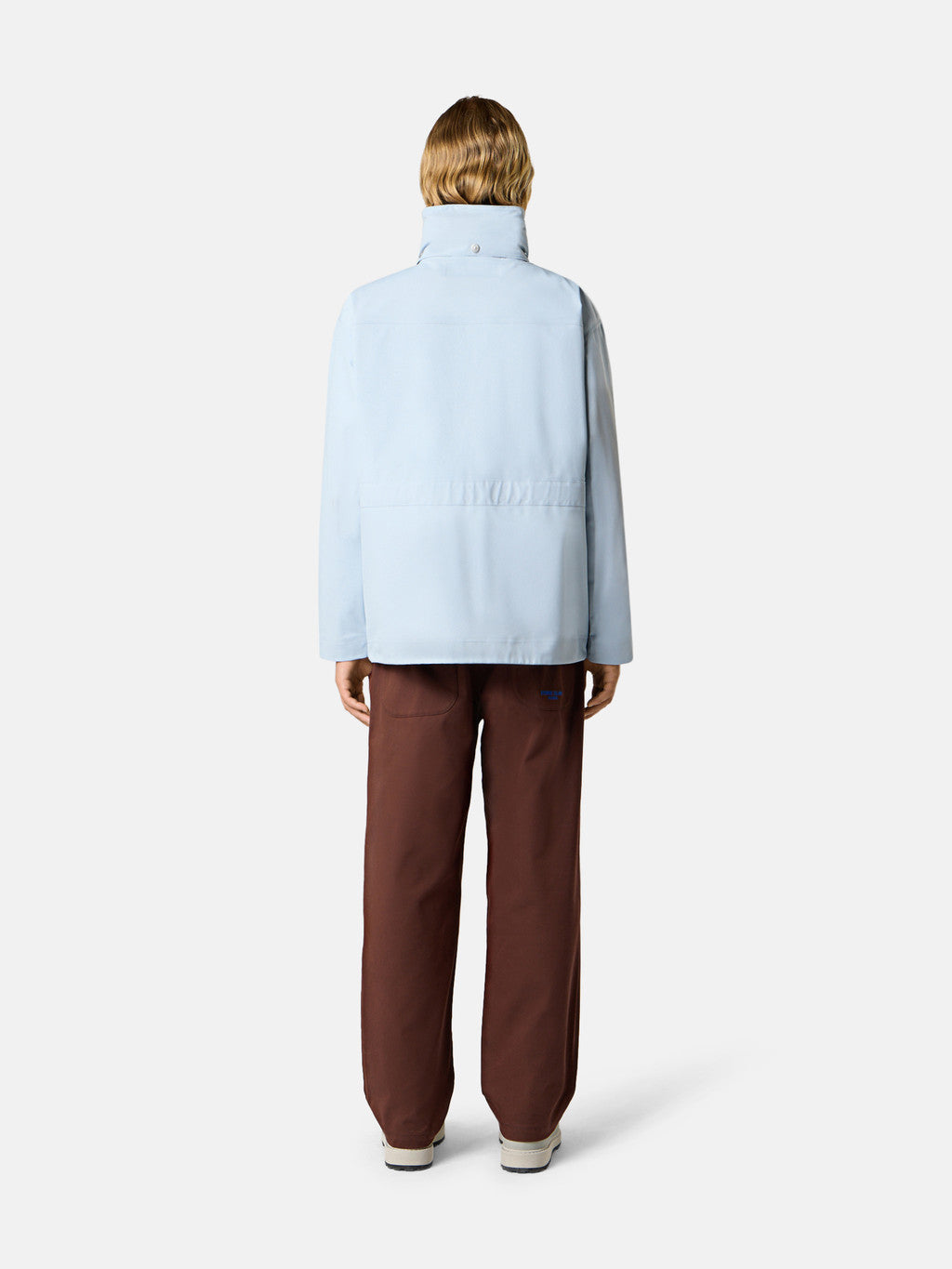 Hooded jacket in a PERTEX SHIELD performance fabric is made of 3 layers. The nylon outer face is laminated to a breathable, wind- and water-resistant membrane and protected internally by a warp knitted run-proof nylon tricot. Treated with a specific anti-drop agent.